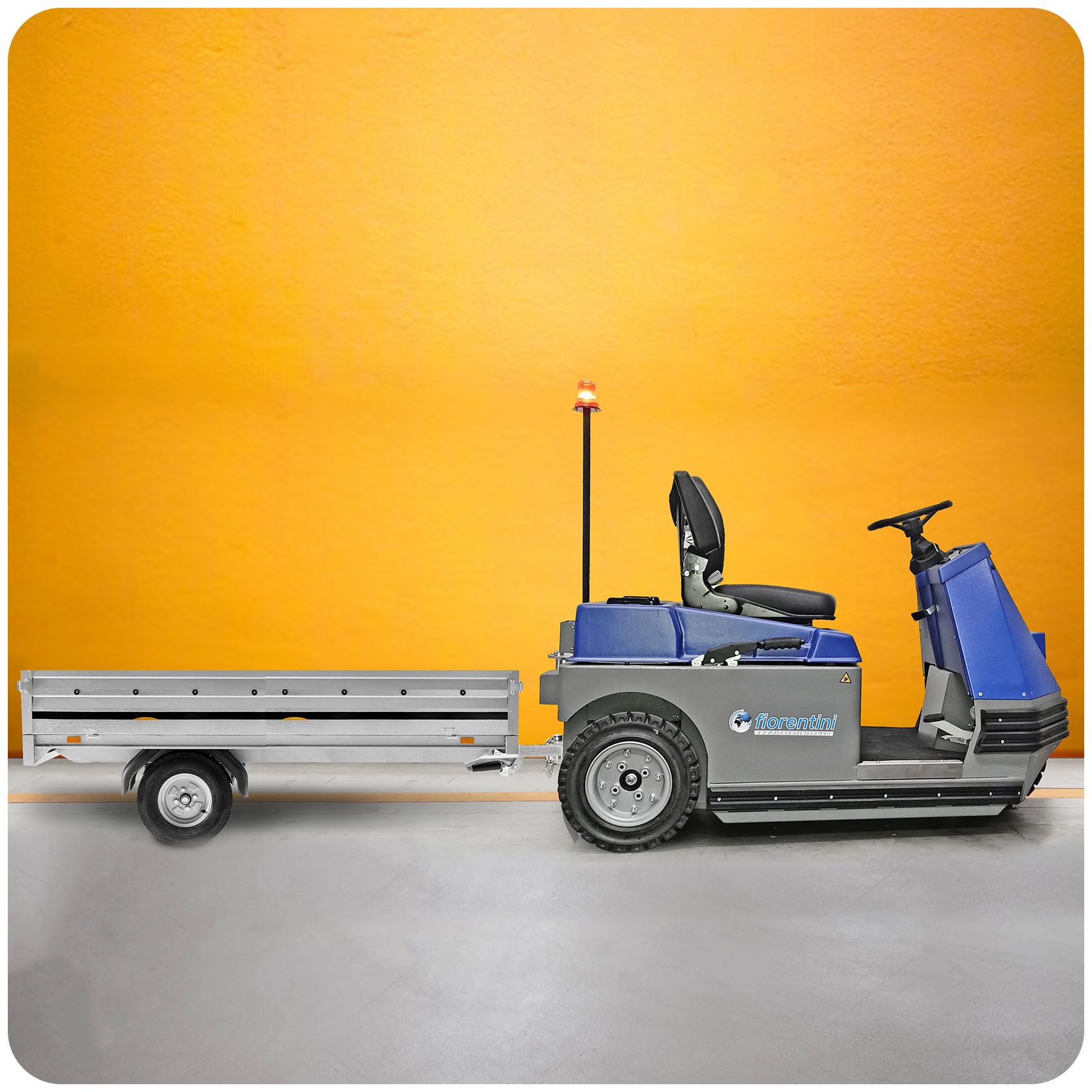 Fiorentini tow tractor range: robust and agile, with a wide towing capacity from 500 to 6,000 kg.