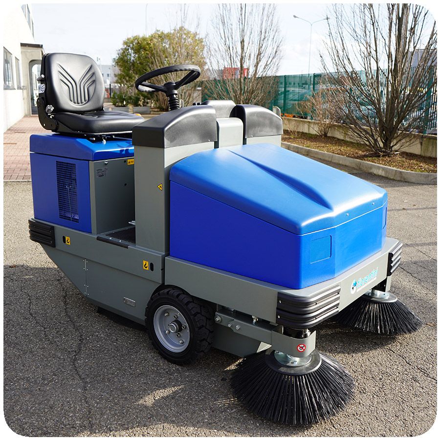 Spazzatrice molto robusta adatta per spazi esterni ed interni anche di grandi dimensioni.